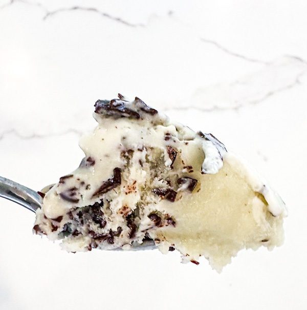 Silky mint gelato with ribbons of dark chocolate that doesn’t freeze up hard!